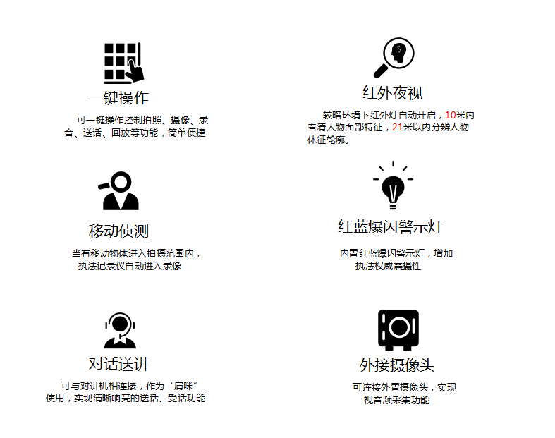 俄罗斯专享会294官网DSJ-200F 执法仪(法院/政府/城管)拍摄像素高达5000万,广角镜头137,拍摄画面精细而全面,大容量电池支持陆续在工作12小时不断电